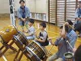 音楽の授業で地域に伝わる音楽を学習するため、城山区の方々に来校していただき、秋祭りに披露するおはやしの演奏をしていただきました。そのあと、太鼓やかねを実際に触らせていただき、太鼓の大きさやたたき方のちがいによる音色の変化を楽しみました。3年生の中には初めて太鼓やかねの音を聞くという子もいて、よい経験となりました。今回の体験を、オリジナルのおはやしづくりに生かしていきます。